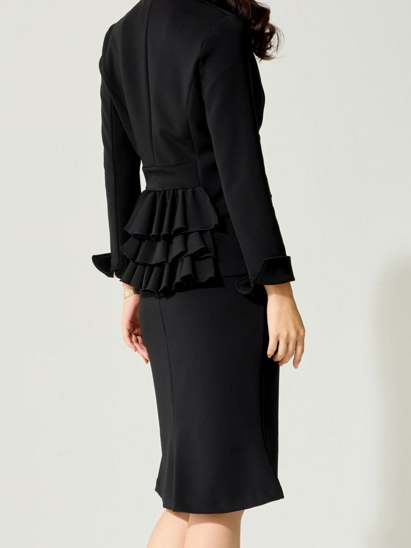 同素材のバックフリルジャケットを合わせてスーツとしても、