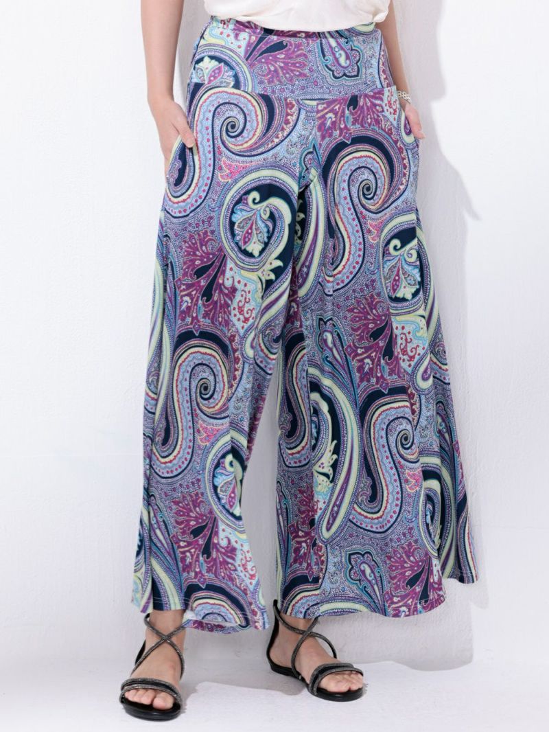 華やかに揺れる、ペイズリー柄ガウチョパンツ。