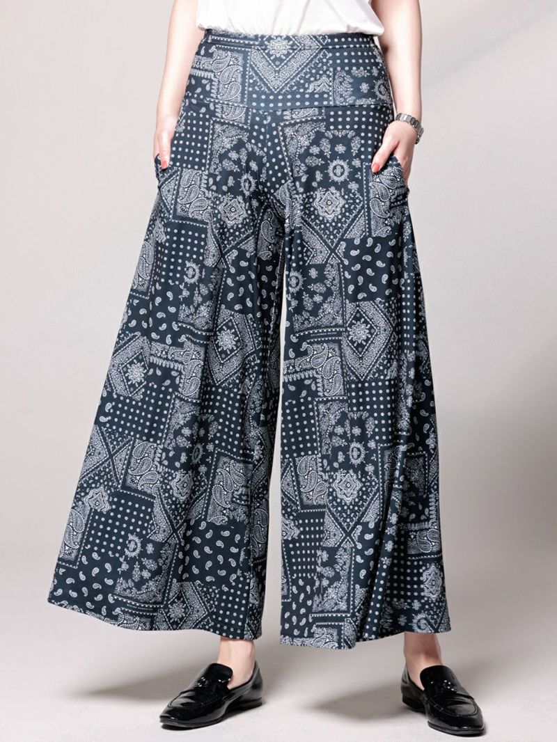 ラフさとモード感を兼ね備えた、バンダナ柄ガウチョパンツ。