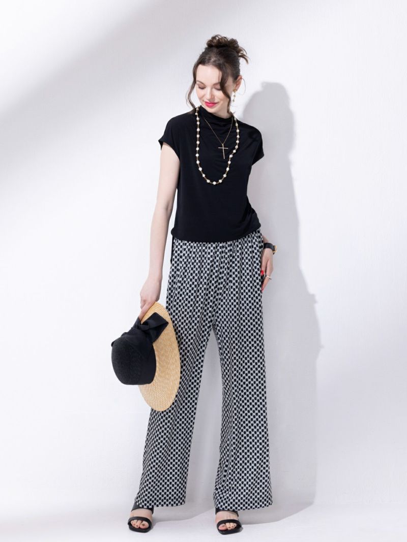 ボトムに幾何学柄を合わせた新型オールインワン。