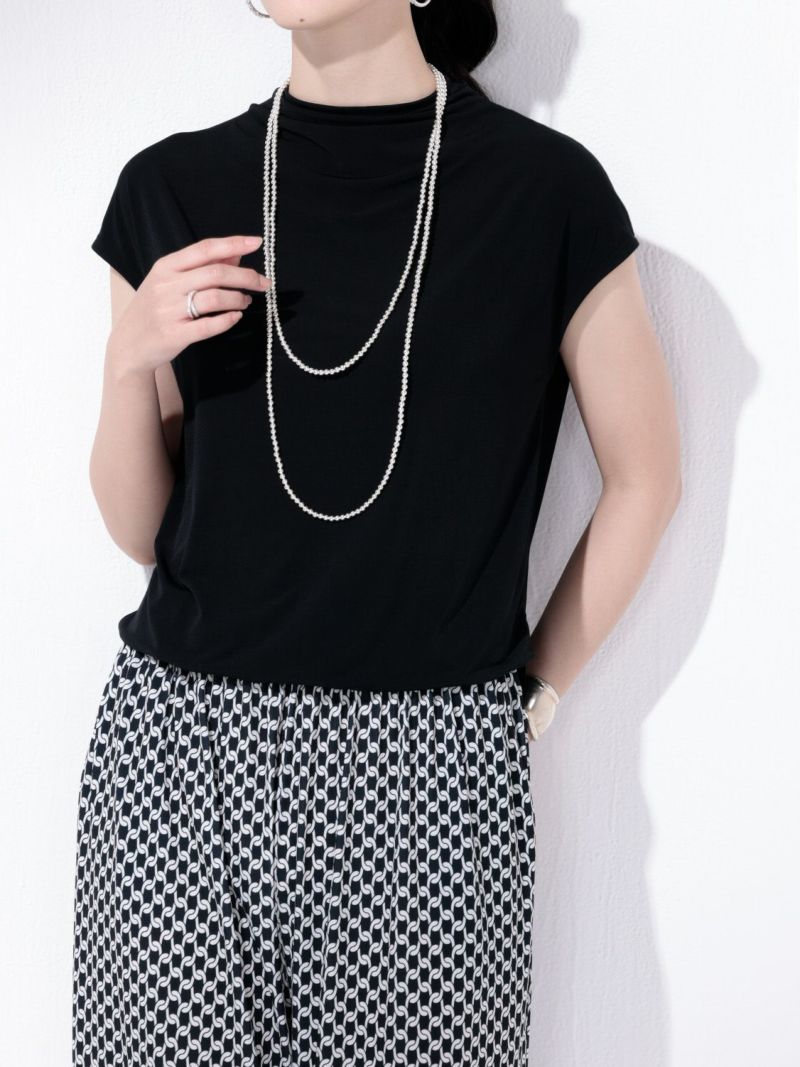 トップは気になる二の腕をすっきりと見せるフレンチスリーブデザイン。