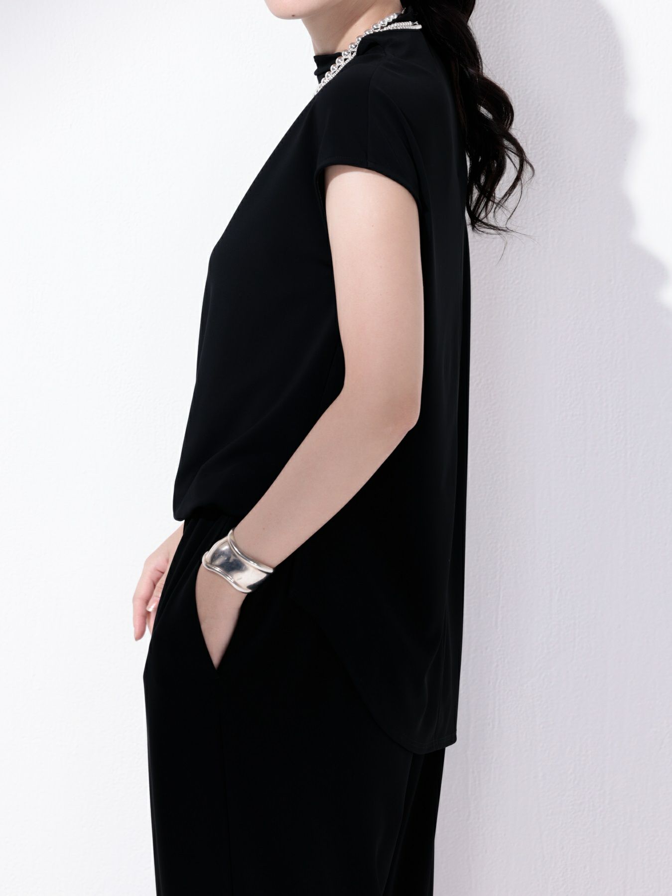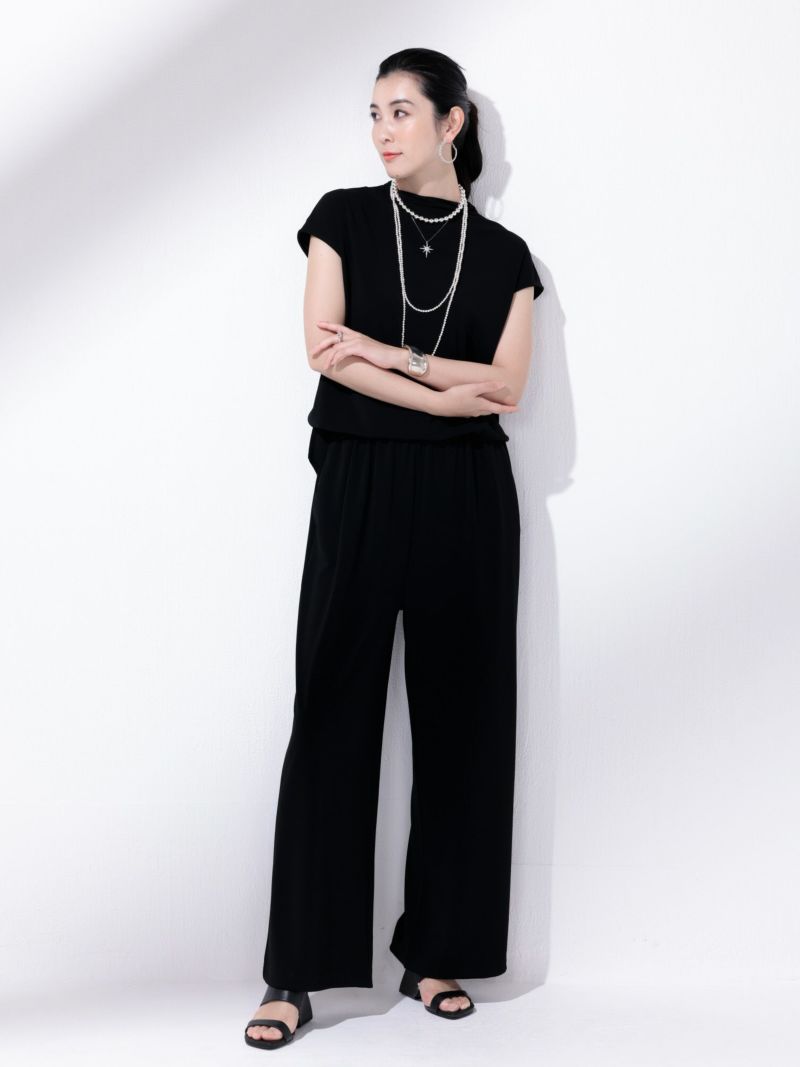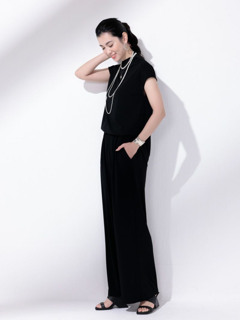 無駄のないシルエットと柔らかな落ち感が魅力のフレンチスリーブオールインワン。