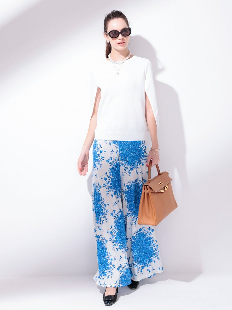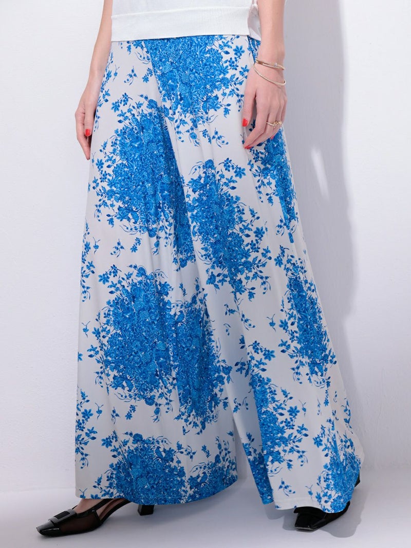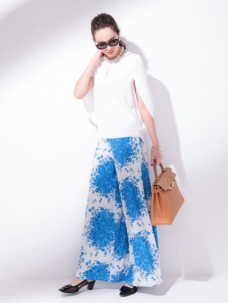繊細なフラワープリントが映える、ドラマティックなガウチョパンツ。