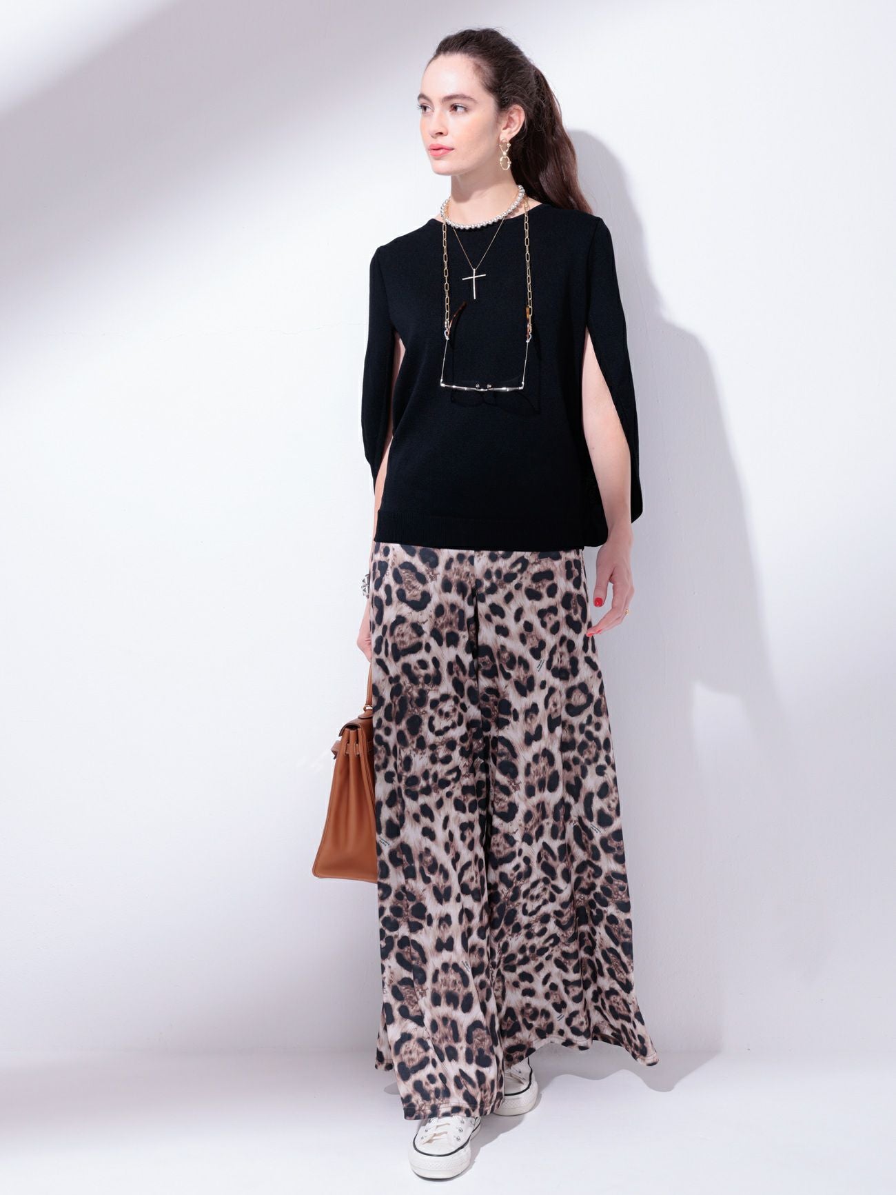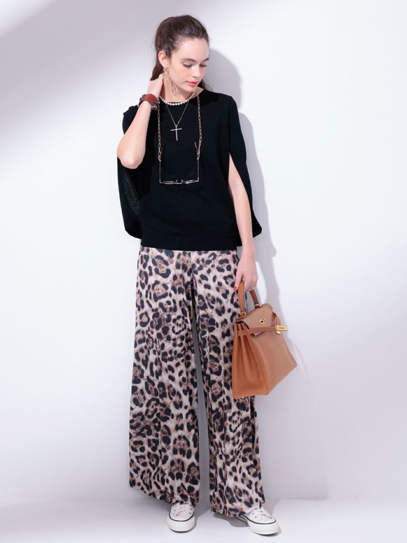 スタイリングの主役に最適なレオパード柄ガウチョパンツ。