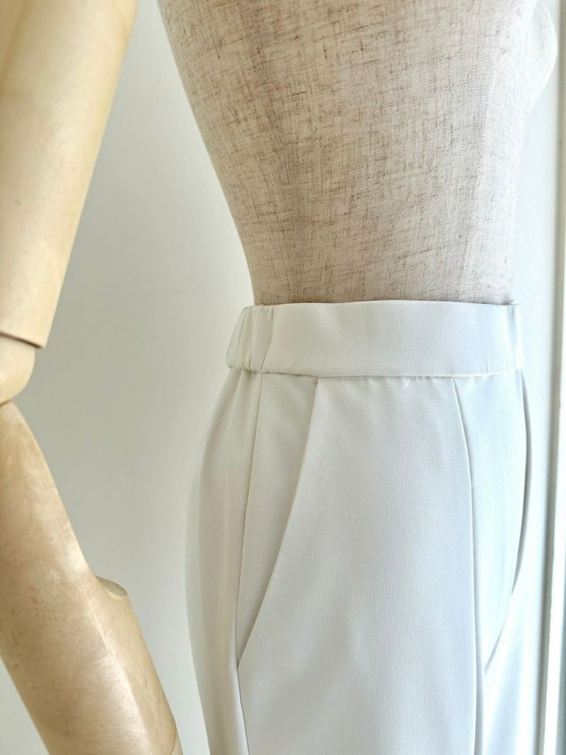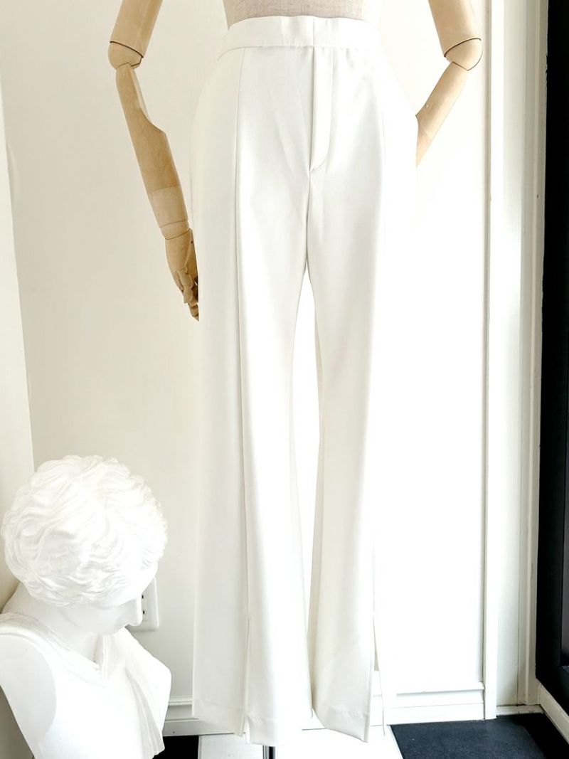 フレアシルエットで脚のラインを美しく見せ、女性らしさのあるカジュアルスタイルを実現。