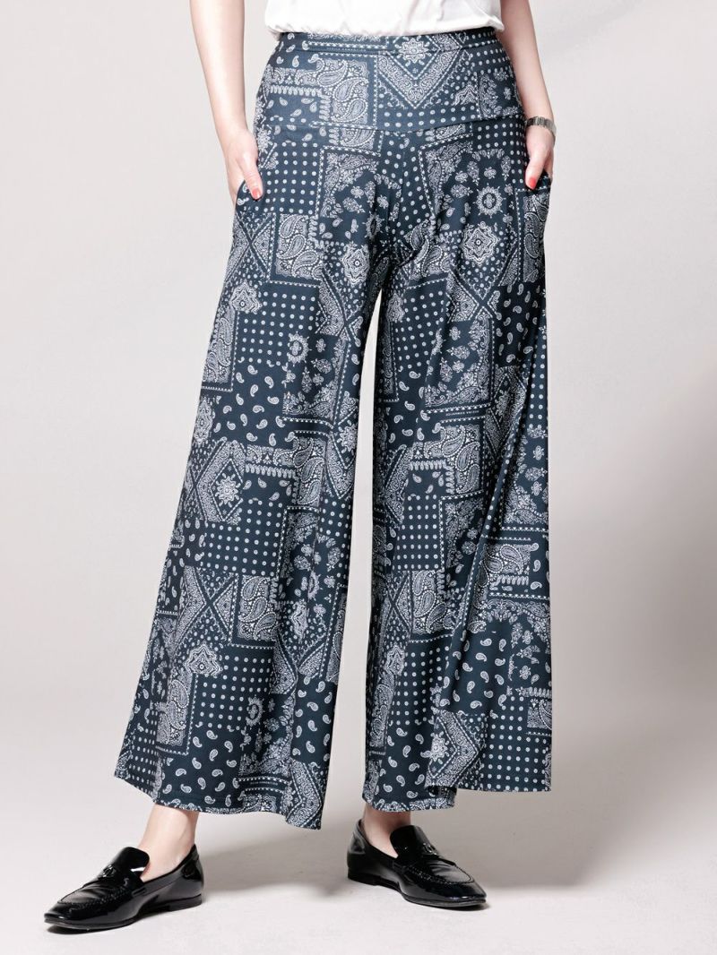 ラフさとモード感を兼ね備えた、バンダナ柄ガウチョパンツ。