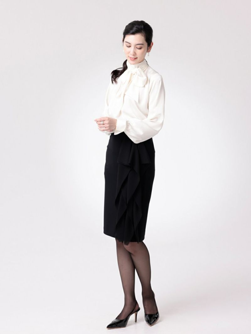 サイドにあしらわれた流れるようなシフォンデザインが魅力です。