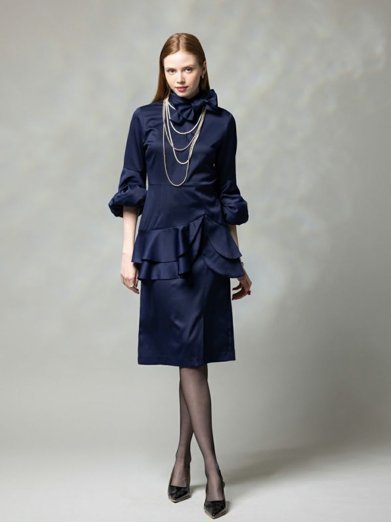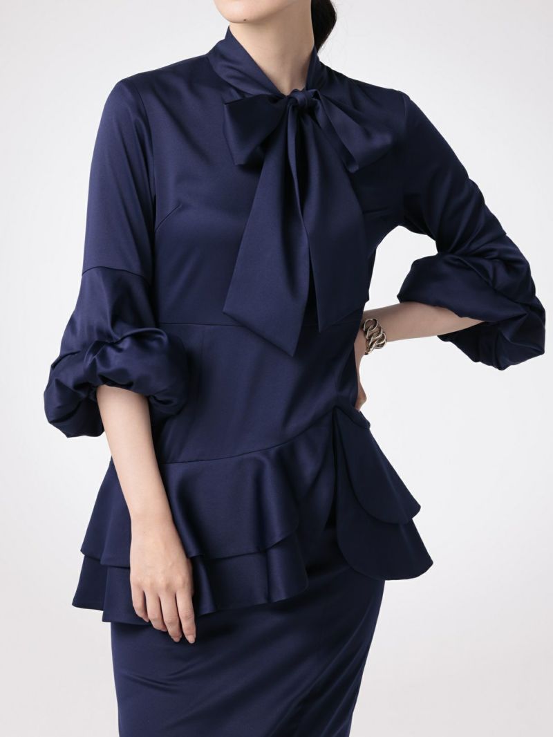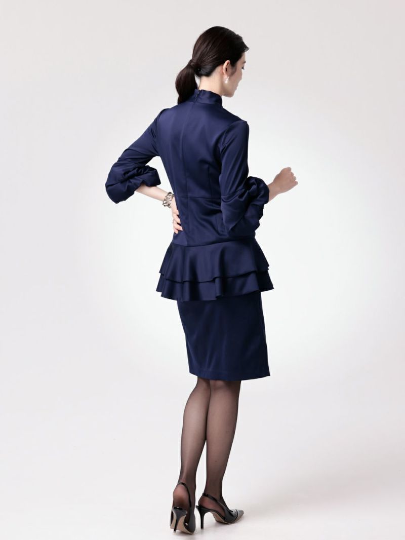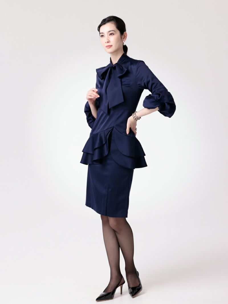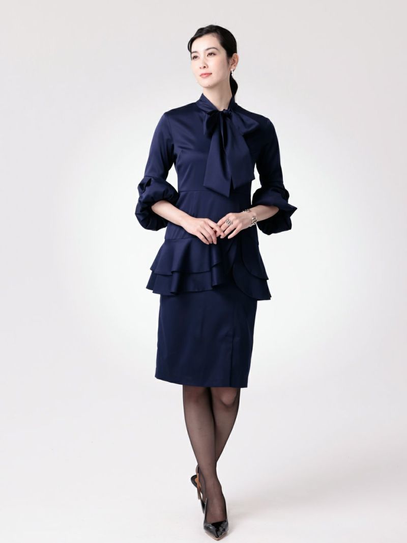 ウエストのペプラムフリルが細見え効果を叶えます。