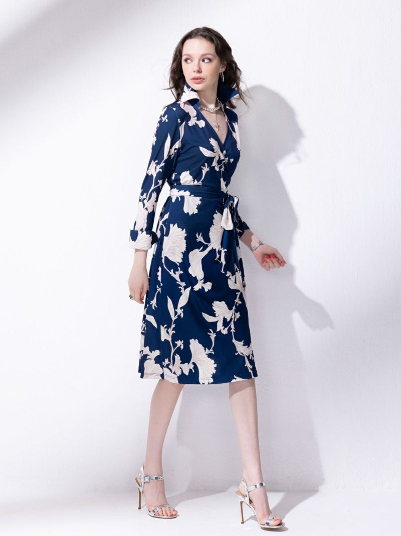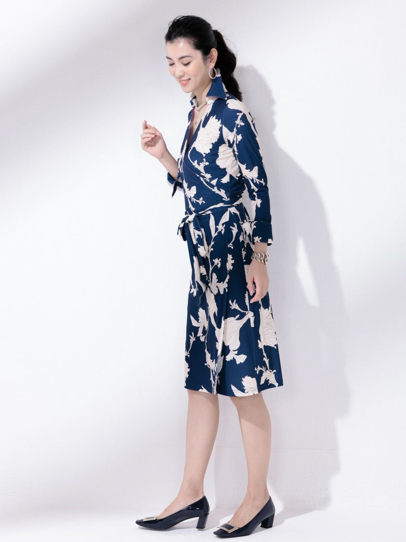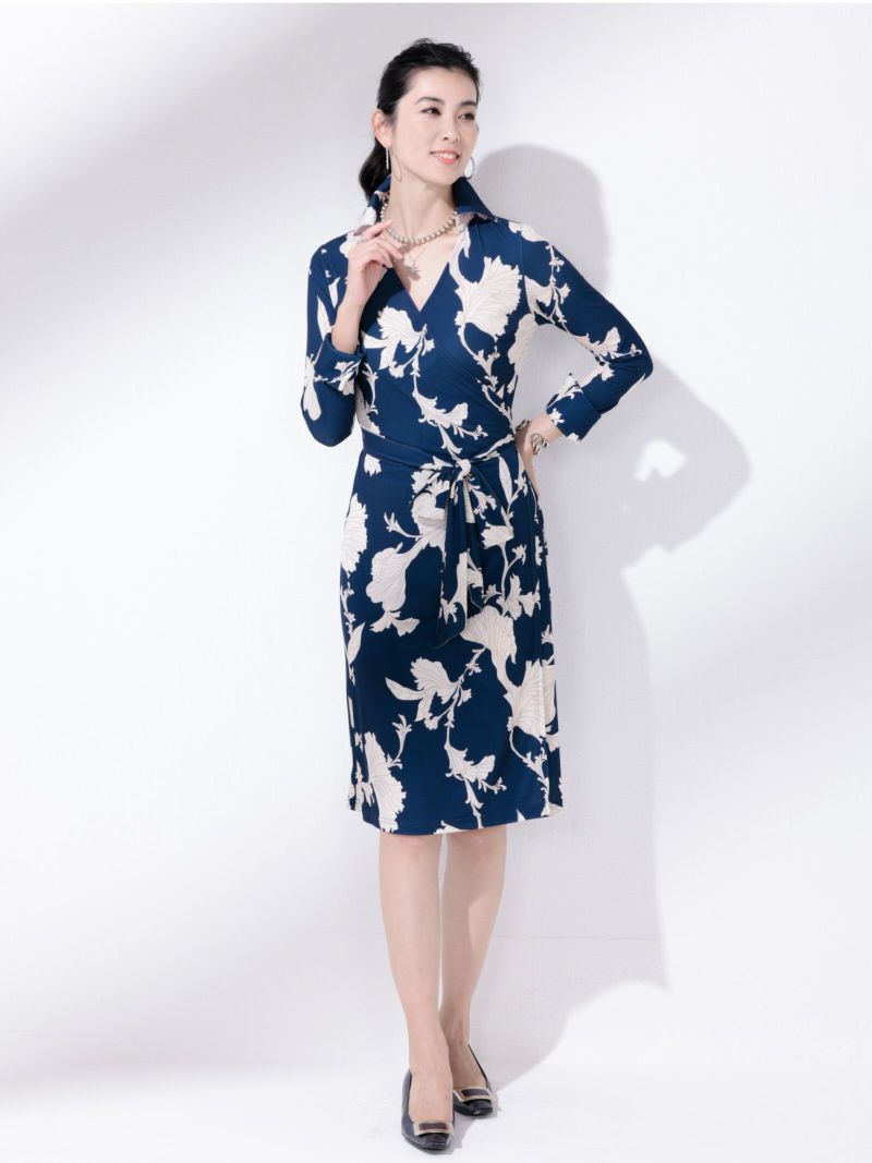 ウエストを引き締めるラップデザインは身体にフィットしつつ