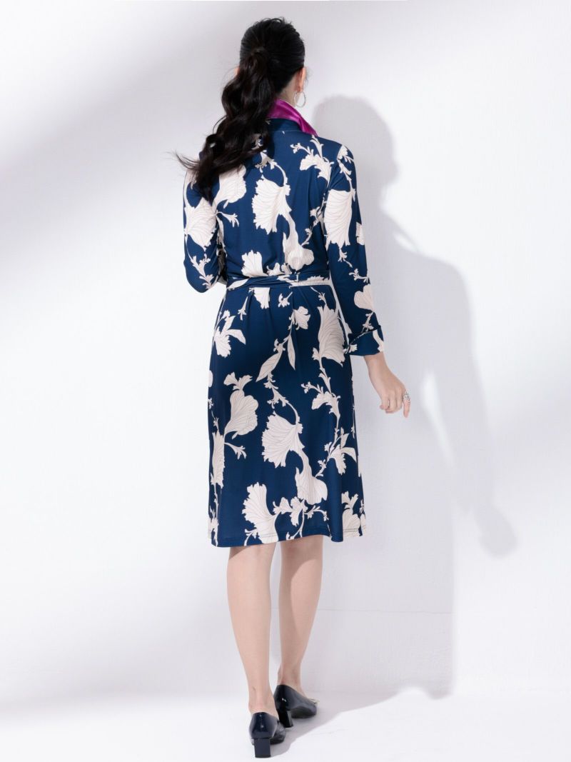海を思わせるような深みのあるオーシャンブルーが魅力的なフラワーワンピース。