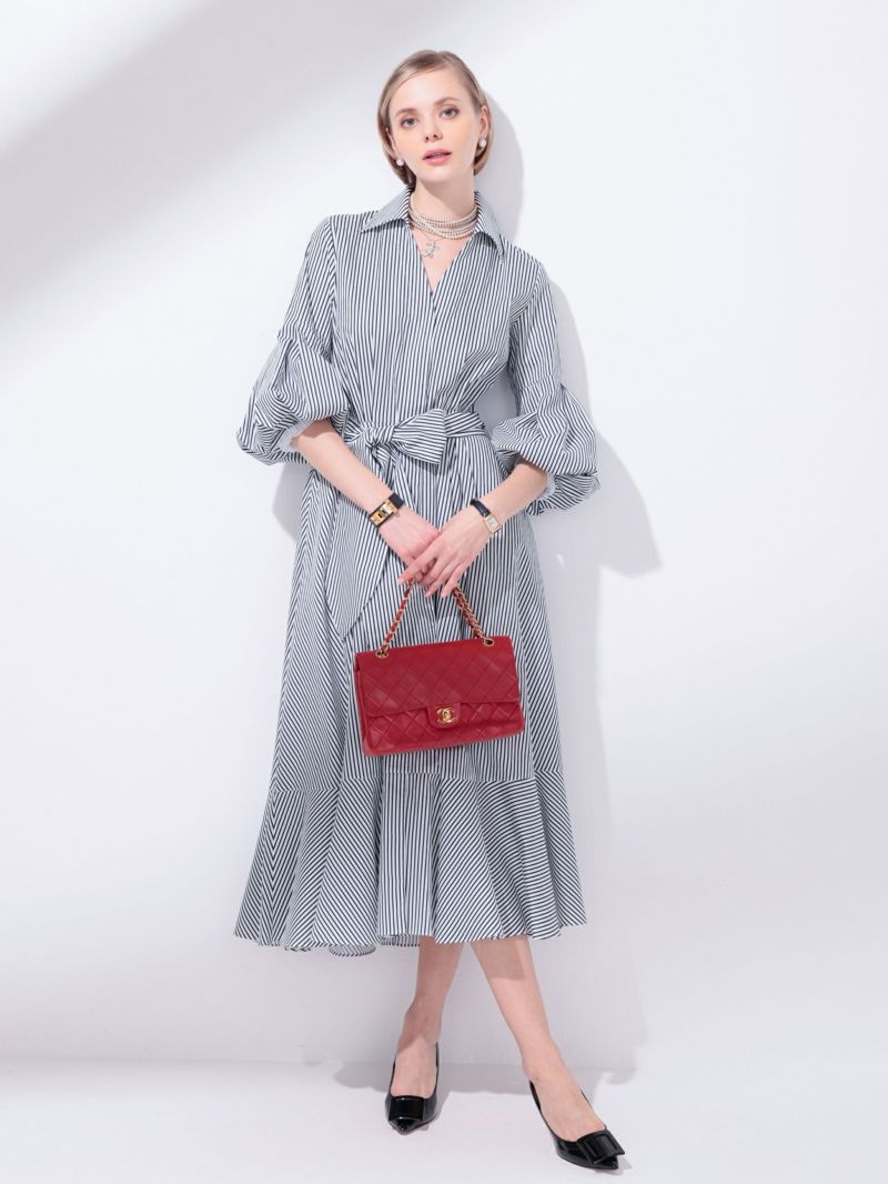 クリーンなストライプが映えるシャツワンピース。