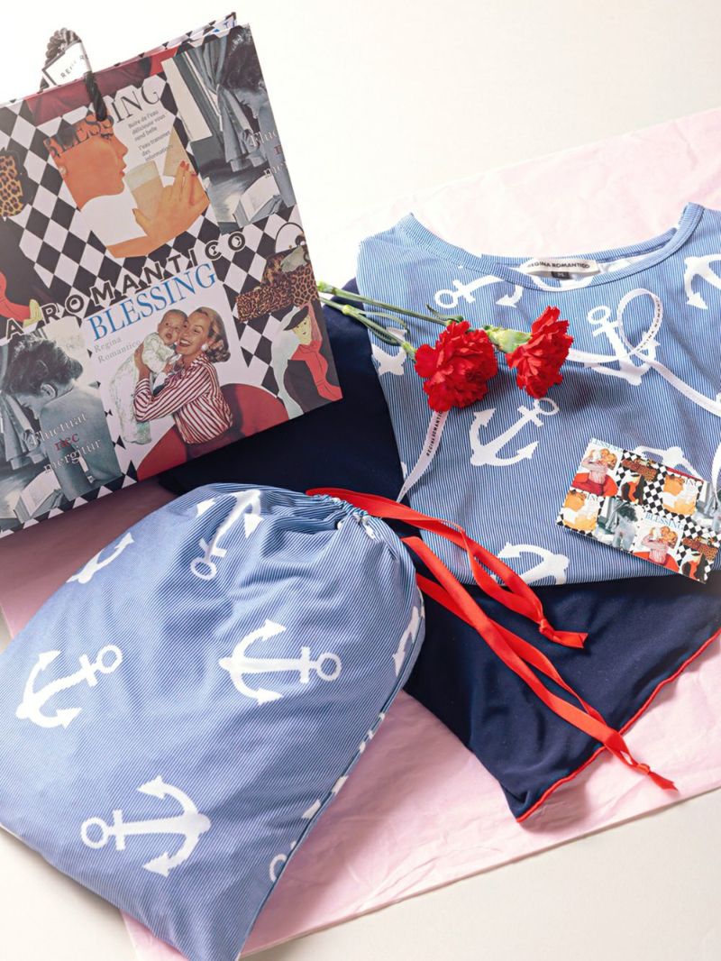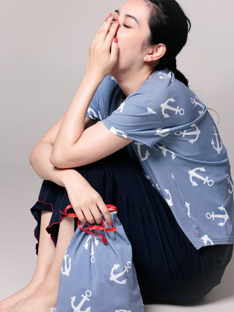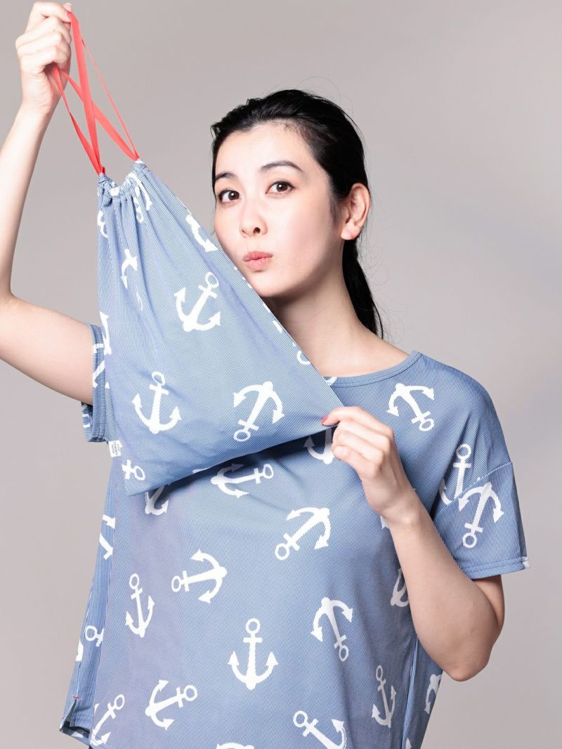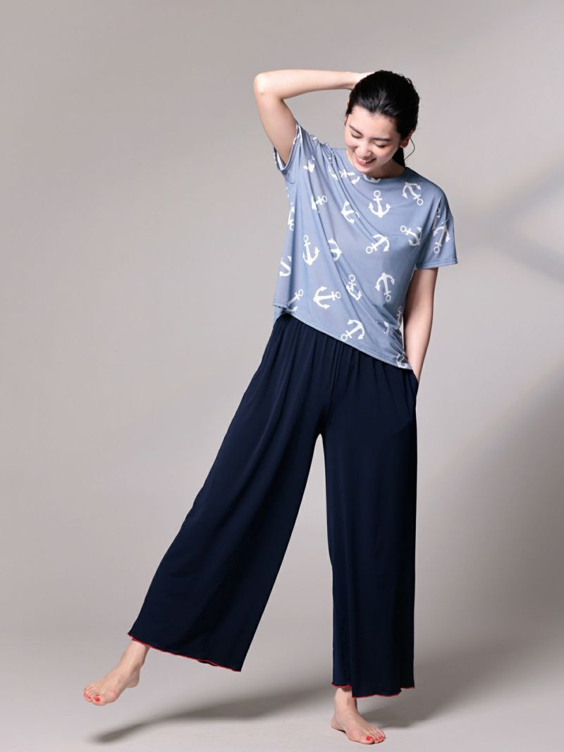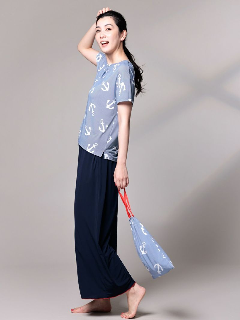 さわやかなアンカープリントに、裾の赤いラインがさりげないアクセント。