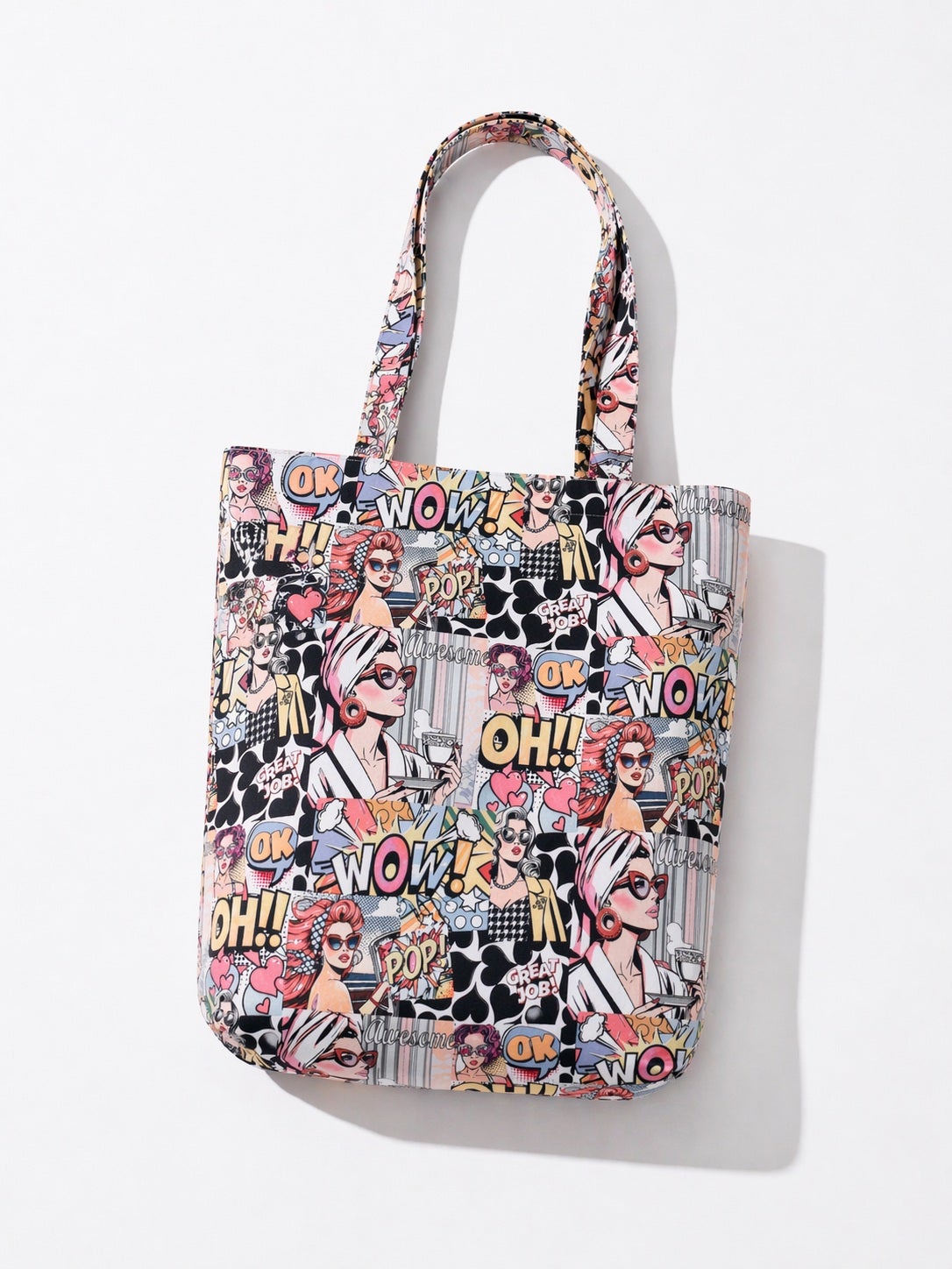 カラフルなコミック柄が視線を集めるエコバック。