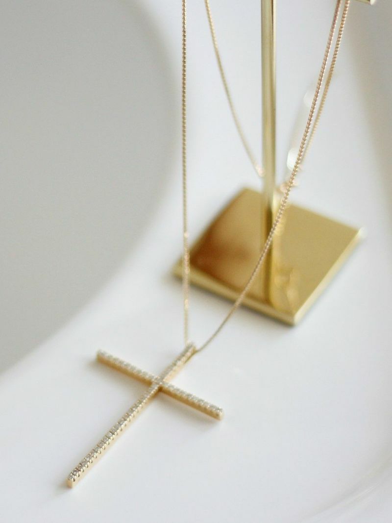 直線的なシルエットがエレガントな印象を与え、高級感のあるジュエリーに仕上がります。