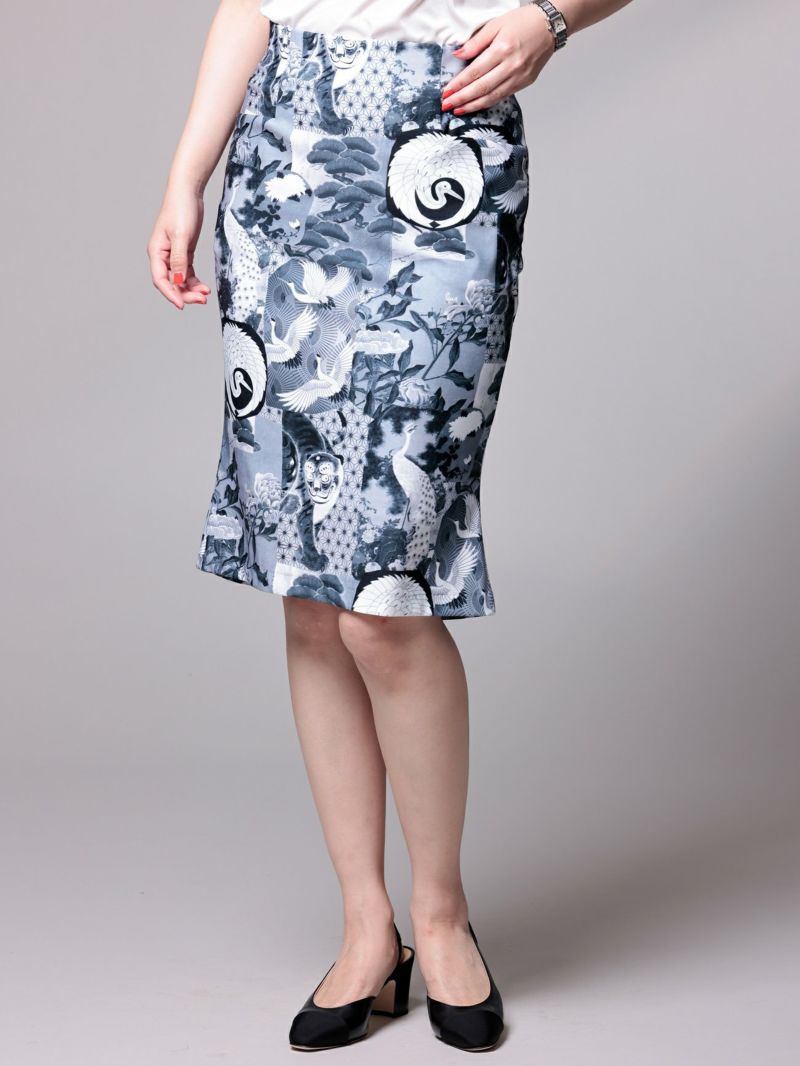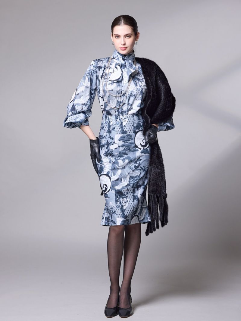 印象的な柄とリボンタイのディテールが、静かな存在感を漂わせます。