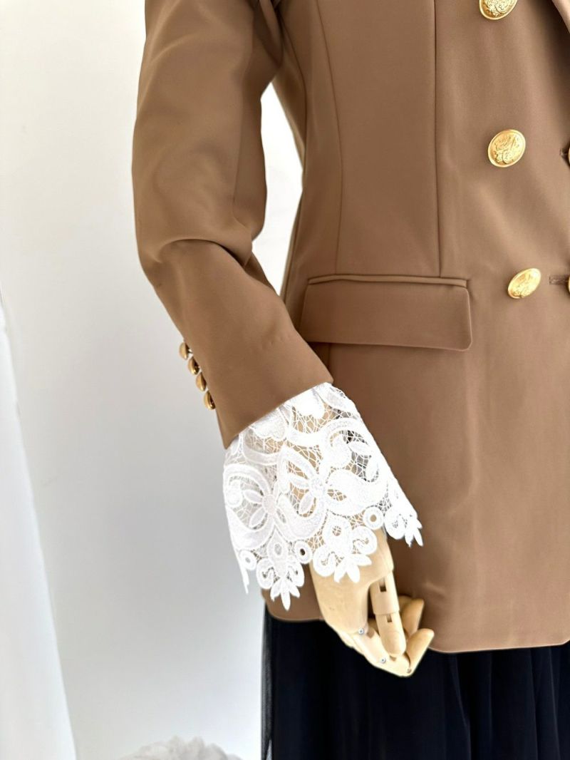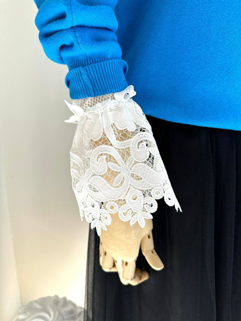 お手持ちのジャケットやニットにプラスすると華やかな印象に。
