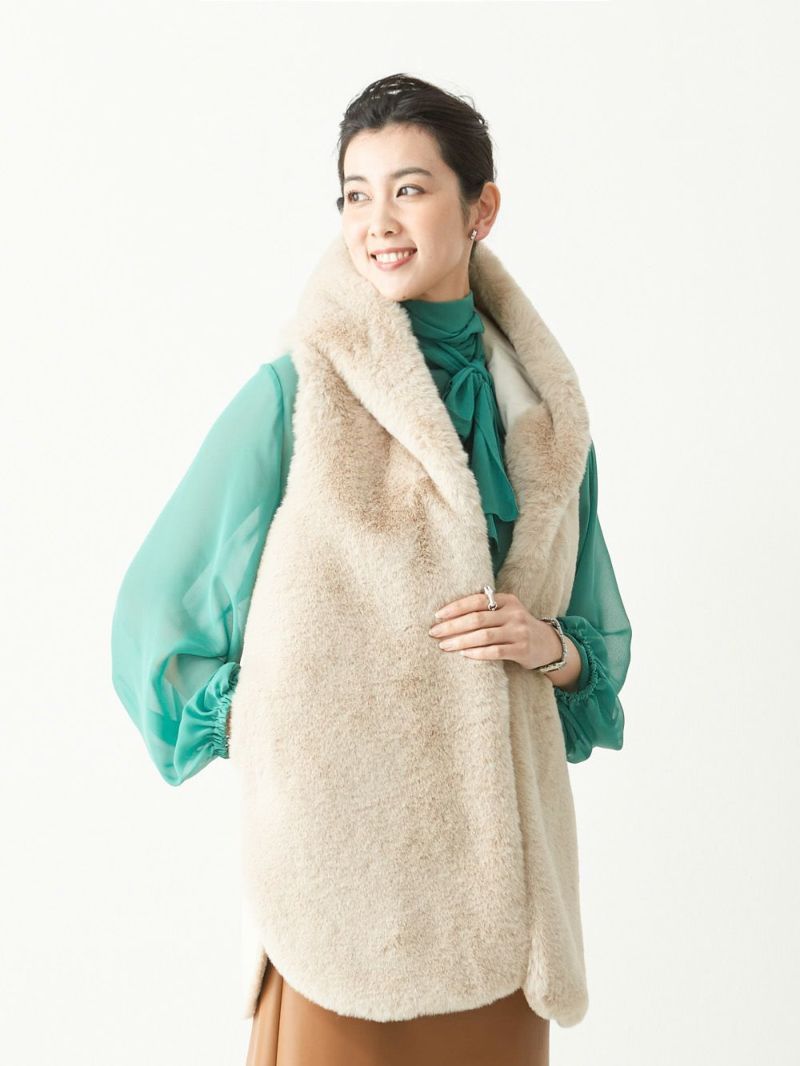たっぷりとしたシルエットが魅力のフェイクファージレ。