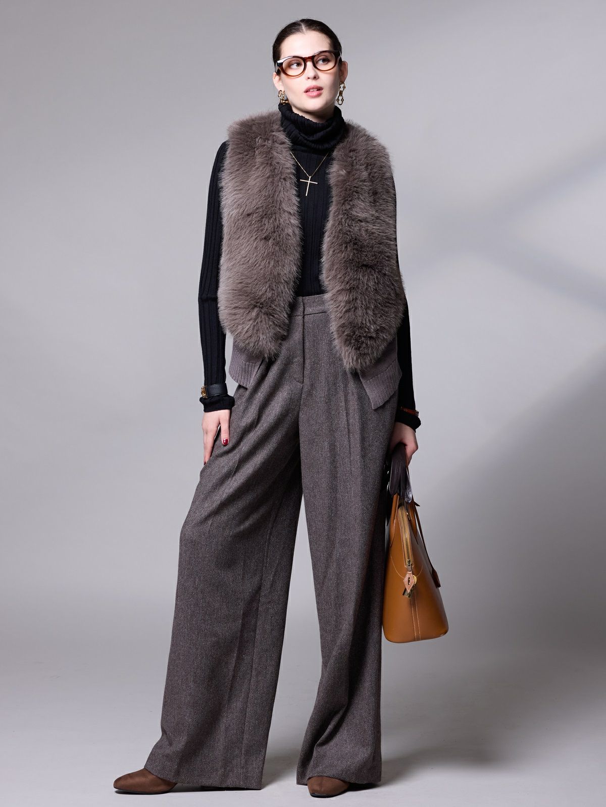 重くなりがちな秋冬の装いも、異素材の組み合わせで軽やかな装いになります。