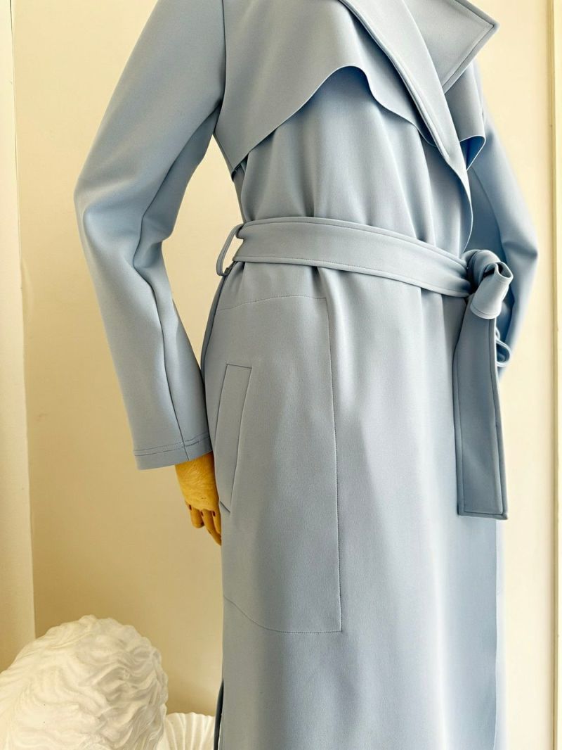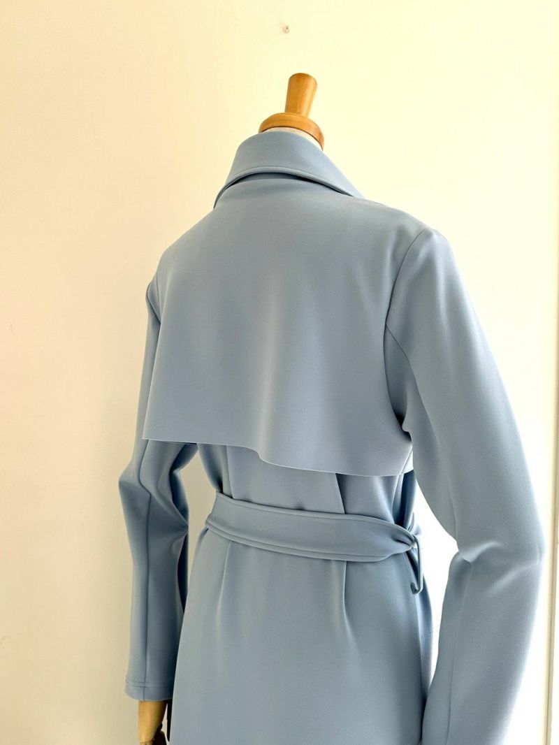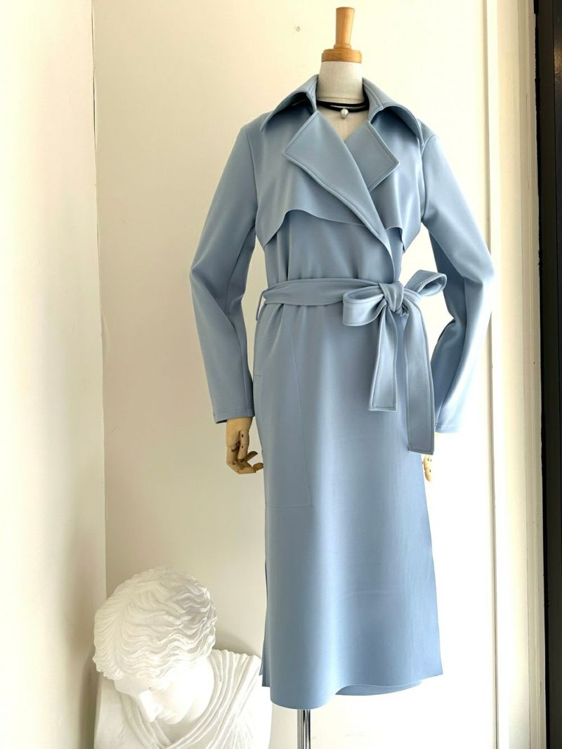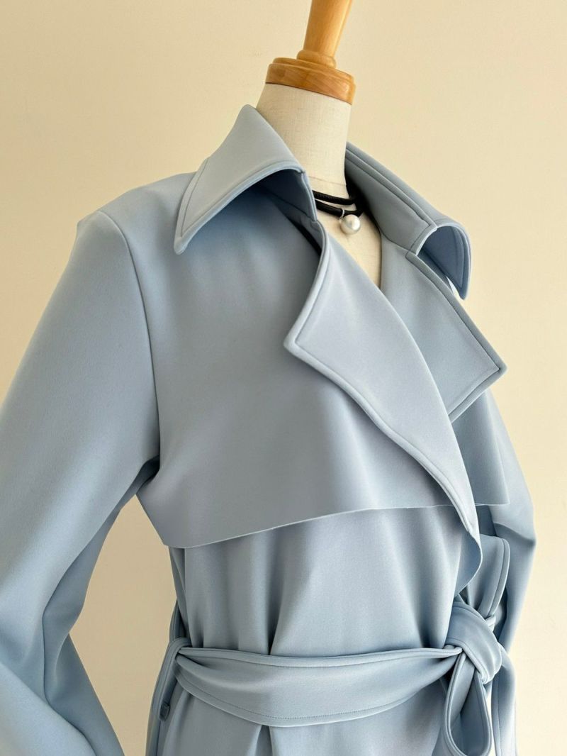 爽やかな春を感じる”ペールブルー”のトレンチコート。