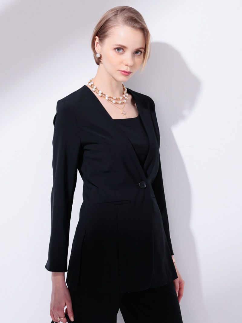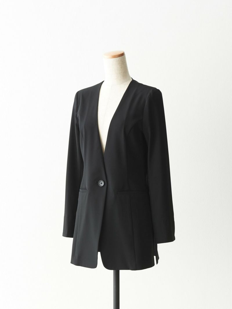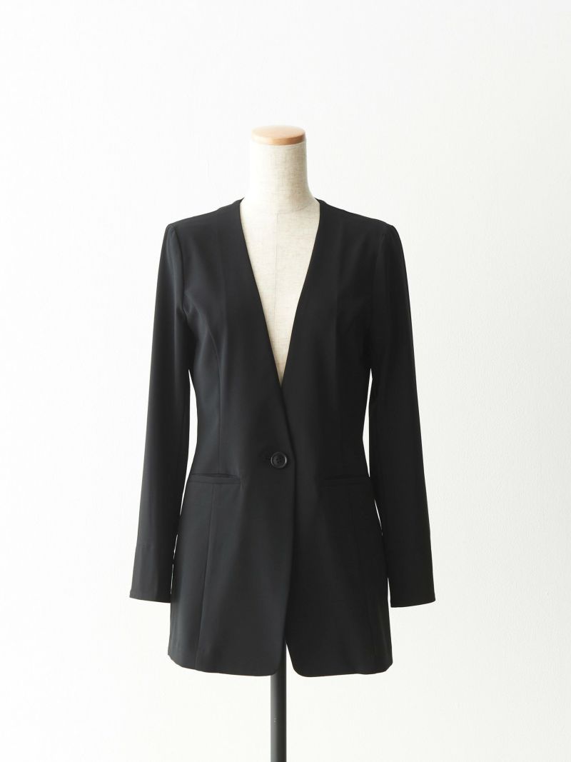 スッキリとしたシルエットが魅力のノーカラージャケット。