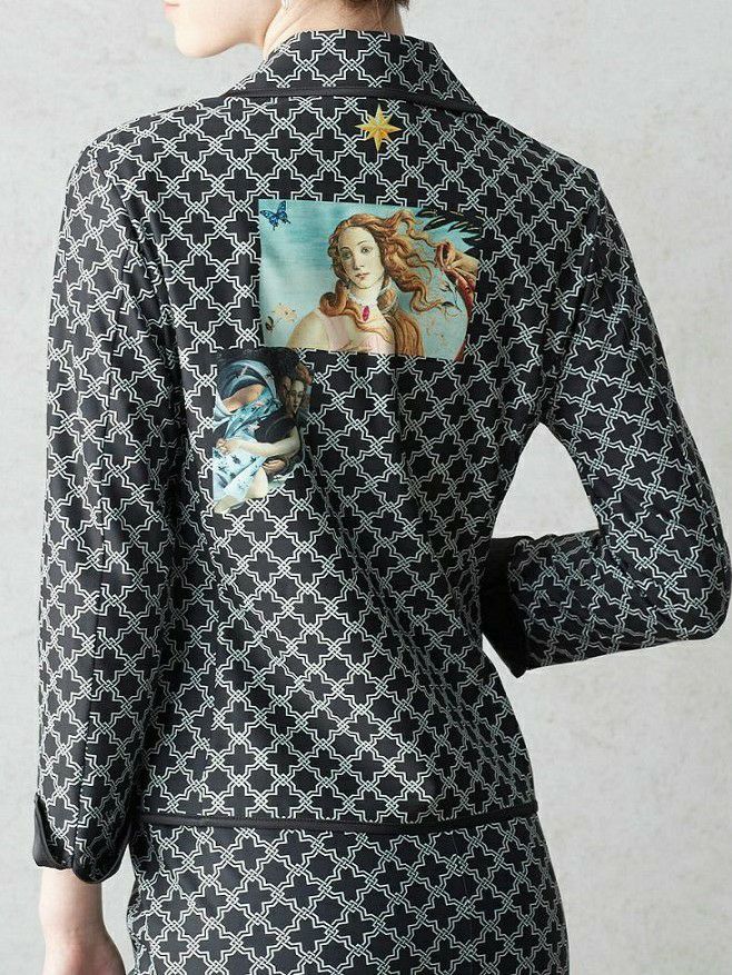 「ヴィーナスの誕生」を幾何学柄に載せた唯一無二の一着。