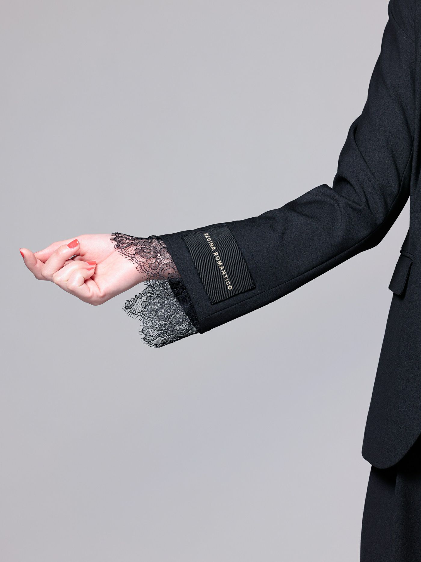 袖口に忍ばせたレースが、ほんのりフェミニンなエッセンス。