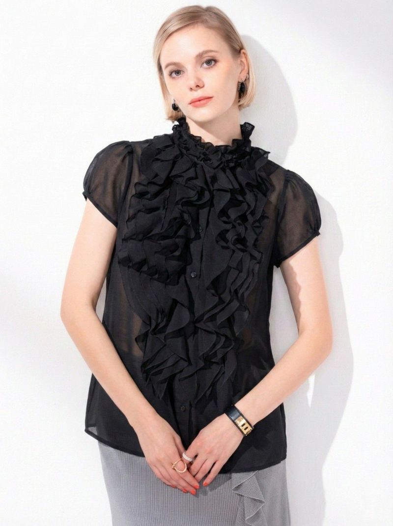 コットンのナチュラルな清涼感が特徴のオーガンジーを使用したフリルブラウス。