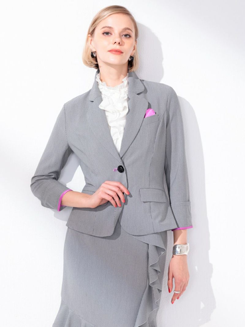凛とした女性を引き立て、洗練のスーツスタイルです。