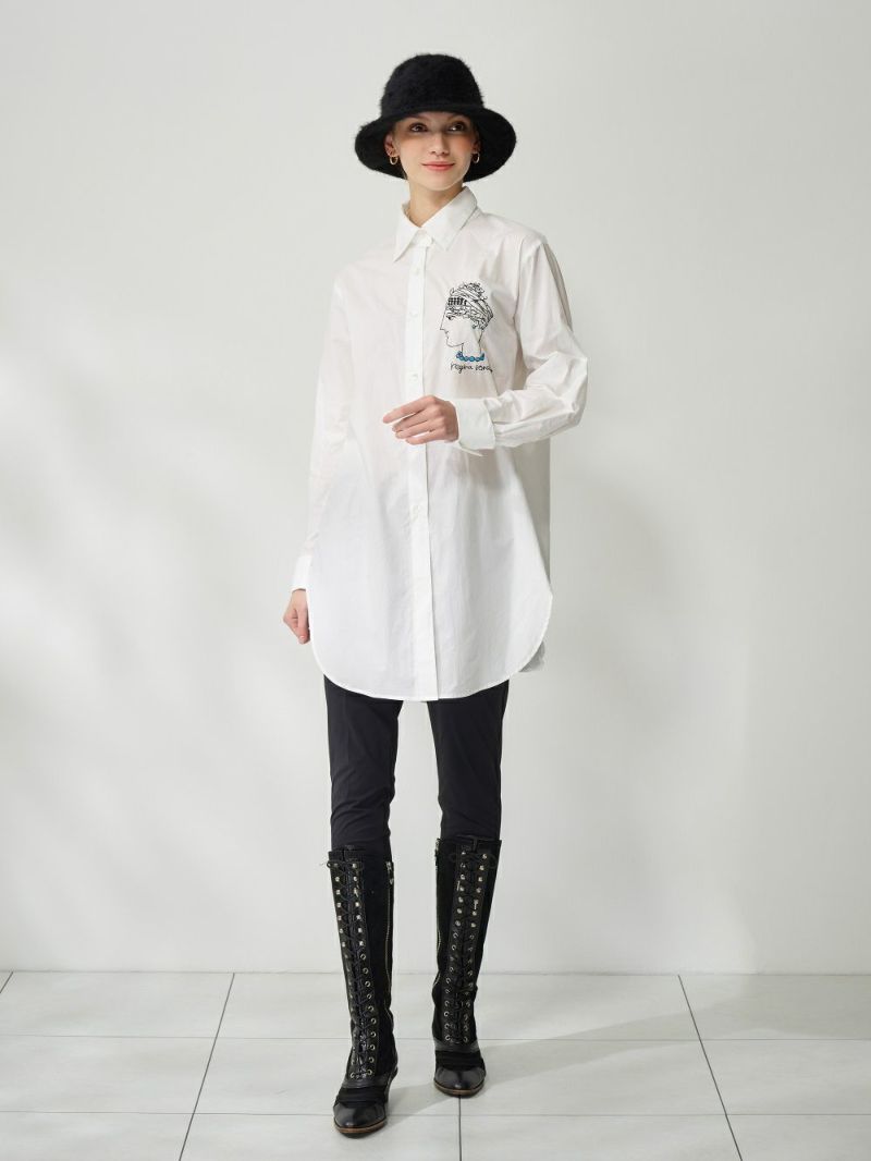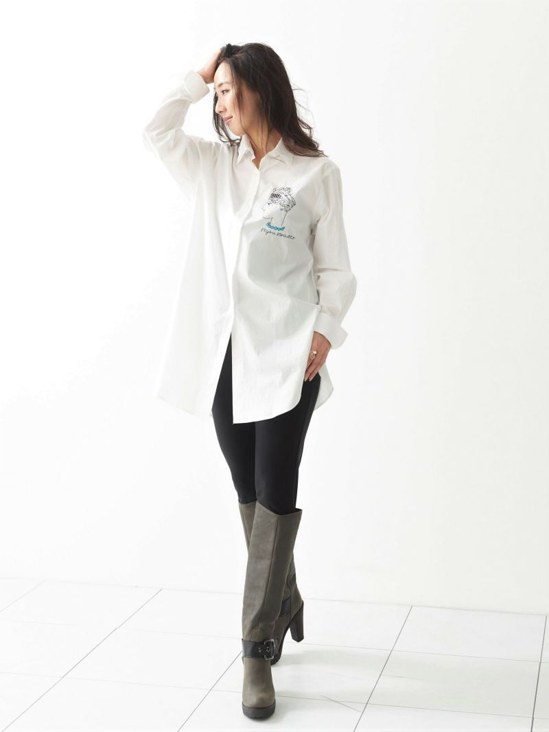 オーナー角野の手描きイラストが刺繍されたビッグシャツ。