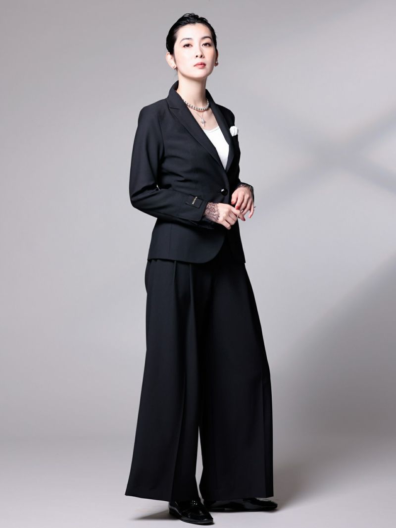 かっちりしすぎず、自分らしいモード感を楽しめる一着です。