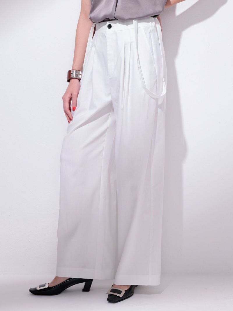 【限定カラー】"PRAISE GOD"ストラップ付ホワイトリネンワイドパンツ