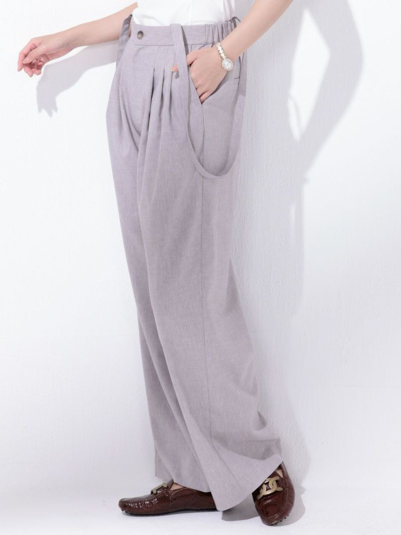 "PRAISE GOD"ストラップ付ベージュリネンワイドパンツ