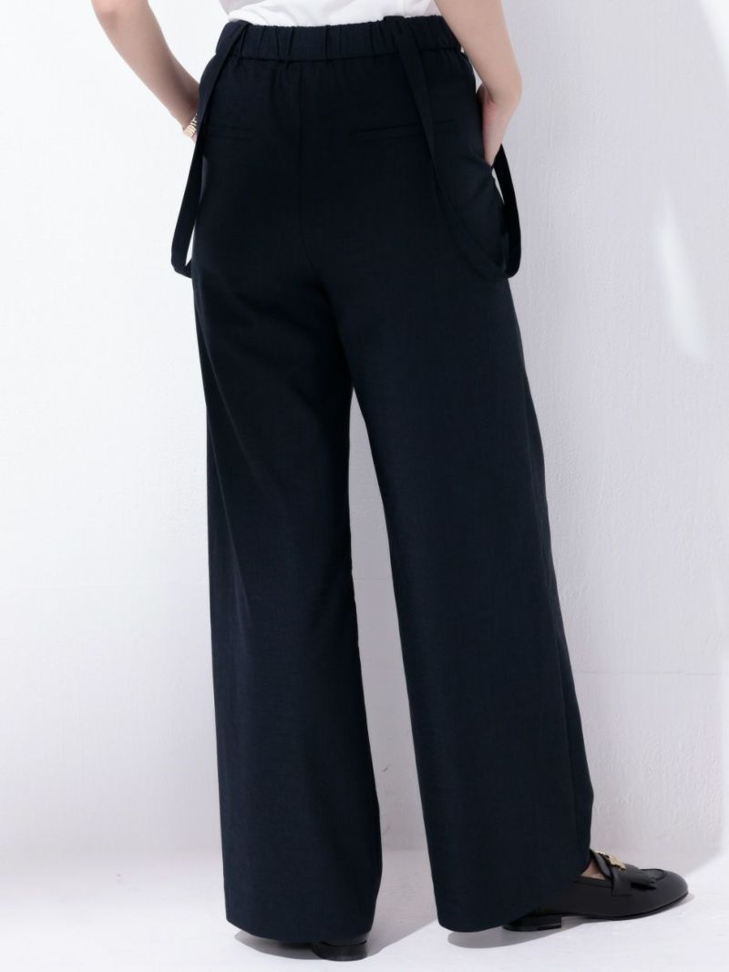 "PRAISE GOD"ストラップ付ネイビーリネンワイドパンツ