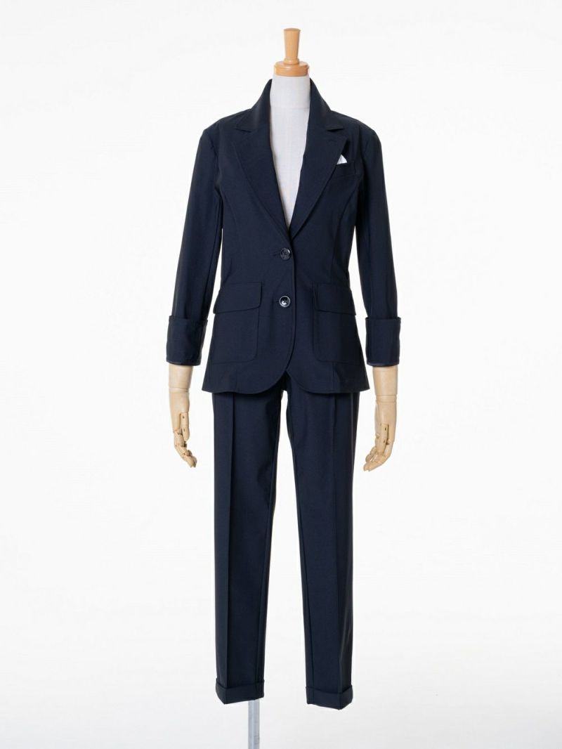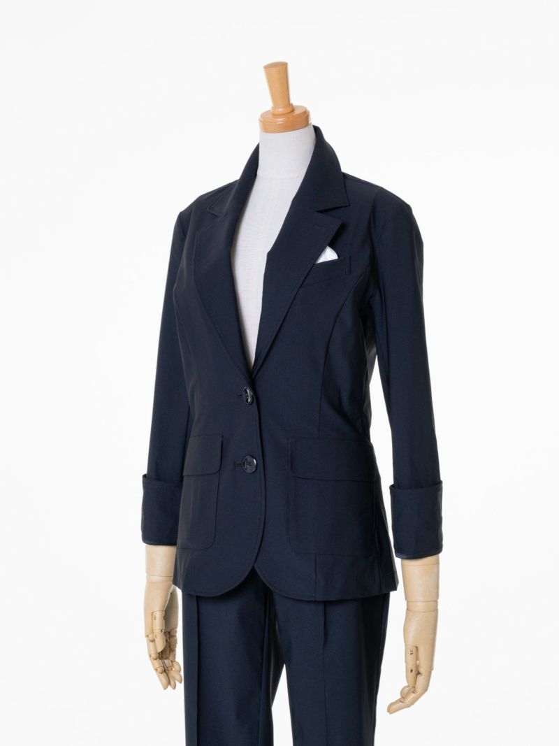 同素材のスティックパンツやタイトスカートと合わせてスーツとしてもお召しいただけます。