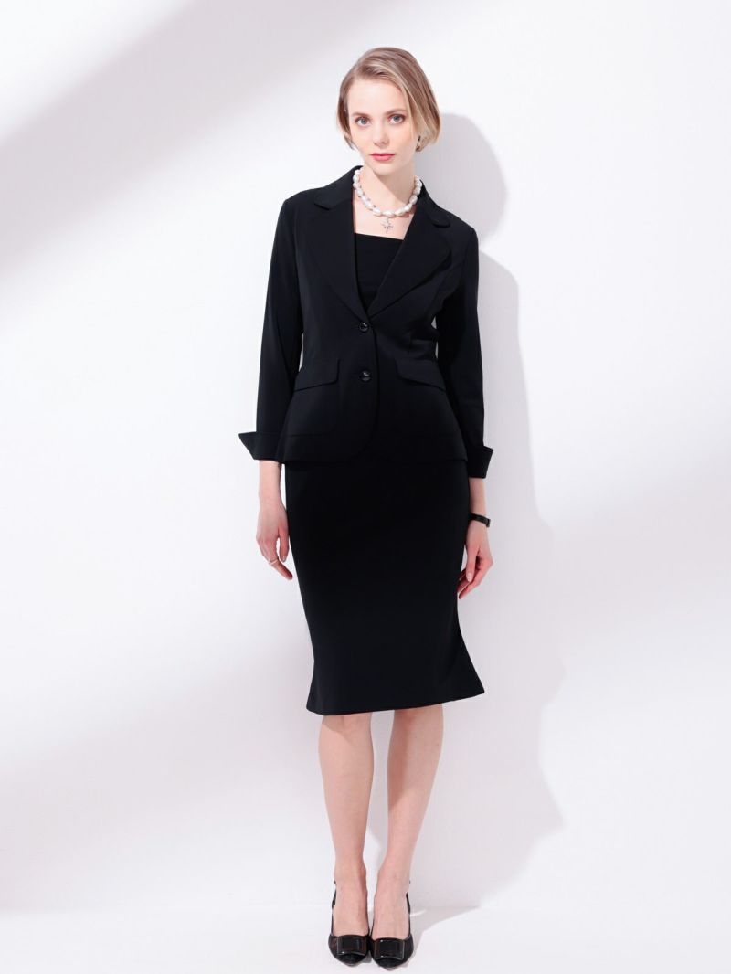 同素材のバックフリルジャケットを合わせてスーツとしても、