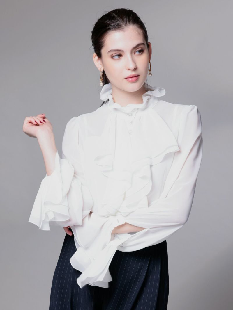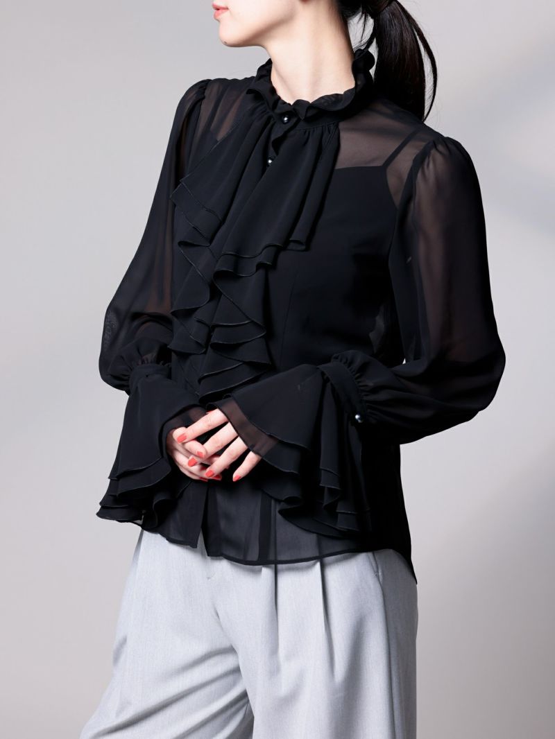 程よい透け感とふわりとした軽さを持つエレガントなブラウス。