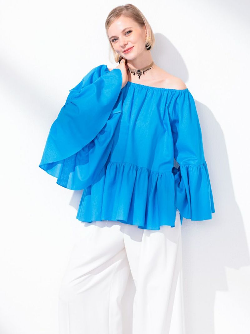 オフショルダーとしても着られるデザインで、その日の気分でスタイリングが楽しめます。