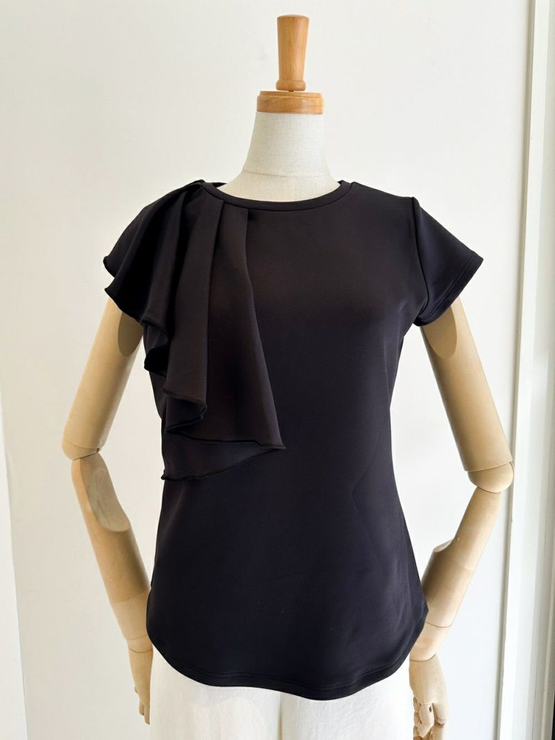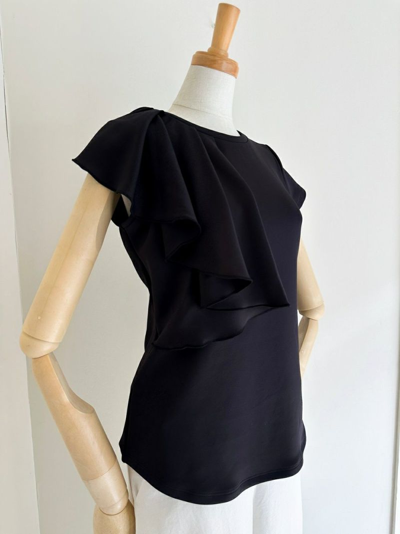 動きのあるフリルが印象的なアシンメトリーフリルトップス。