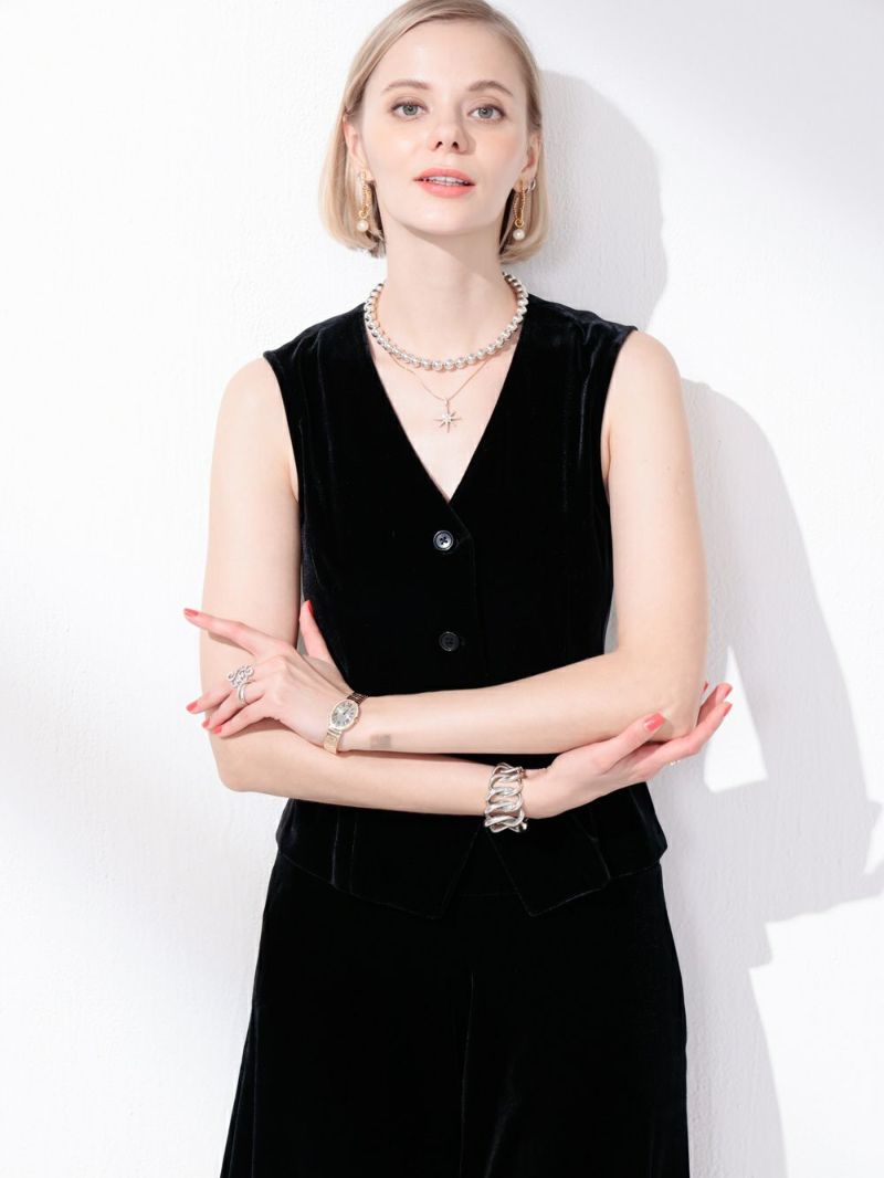 高級感のあるベロア素材が秋冬ムード漂うベロアベスト。
