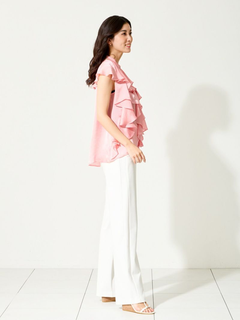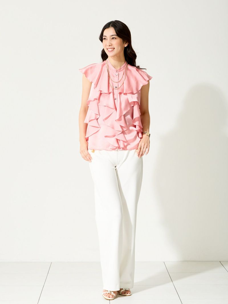 着るだけで顔周りを華やかな印象にし、トップスとしてもインナーとしても活躍できるアイテムです。