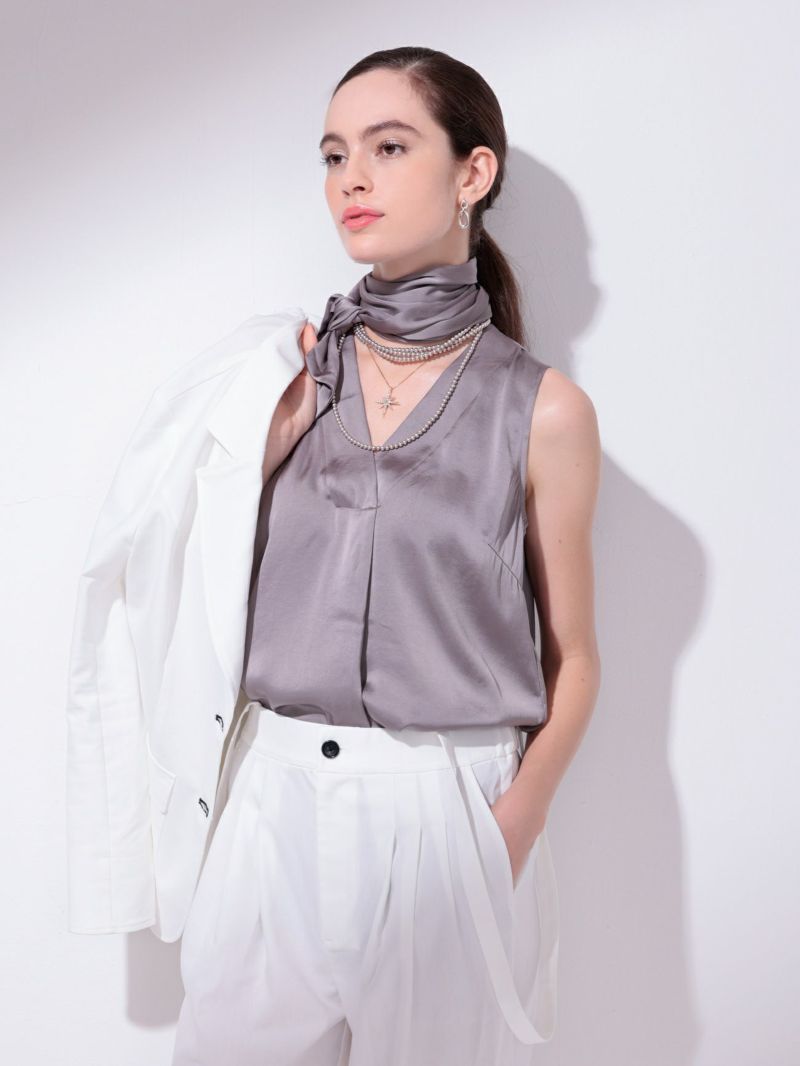取外し可能なボウタイはゆったりと垂らしてもふんわりと結んでもキュート。