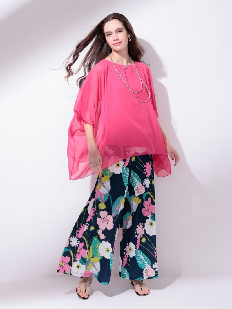 柄物のガウチョパンツや、インナーを重ねて透け感を活かしたスタイリングもおすすめです。