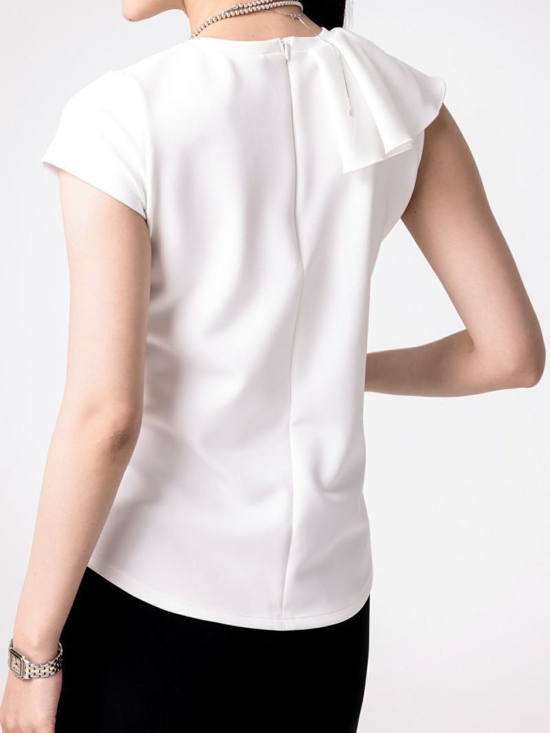 動きのあるフリルが印象的なアシンメトリーフリルトップス。