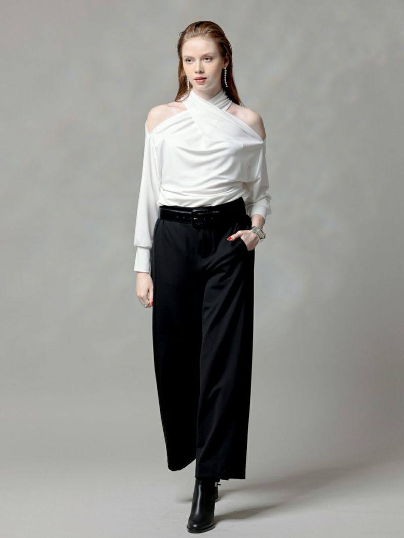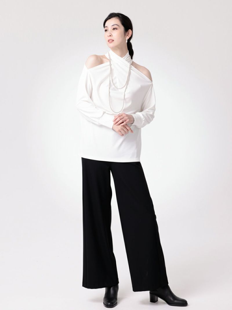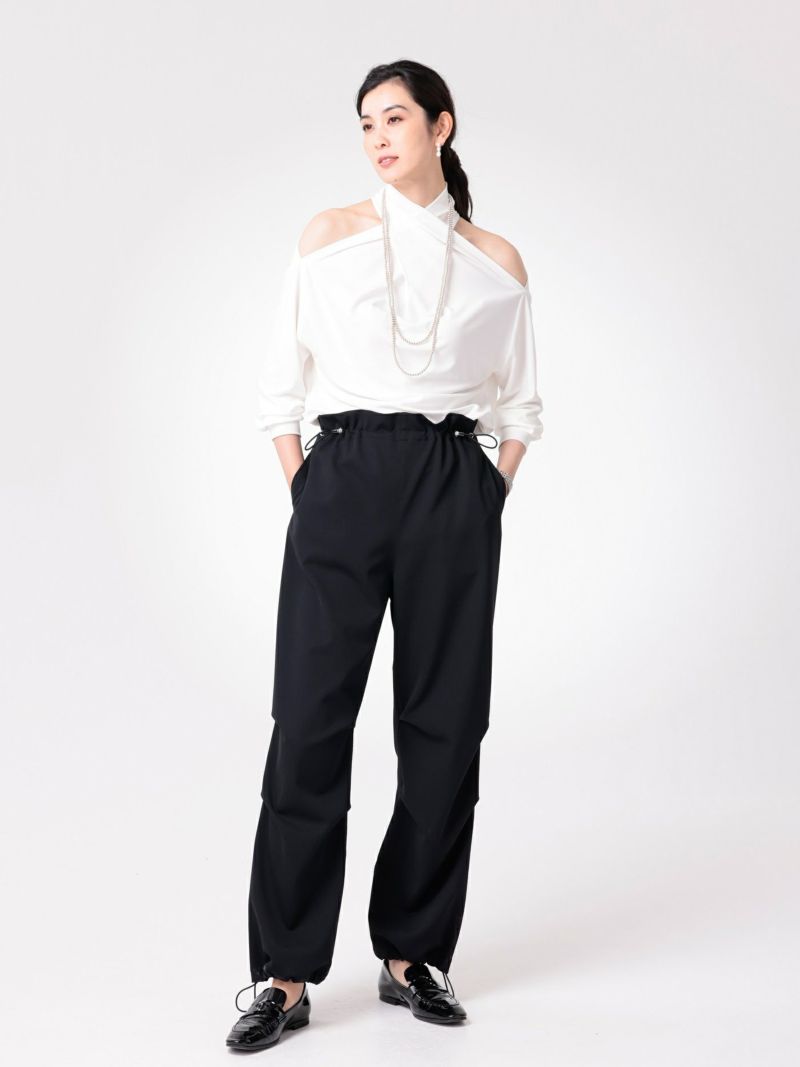 ワイドパンツをスタイリングしてクールなコーディネートもオススメ。