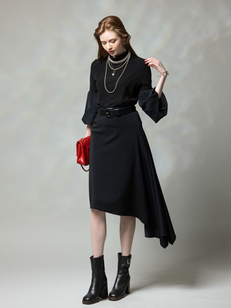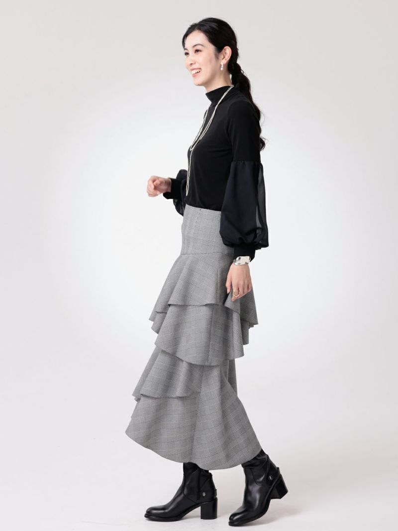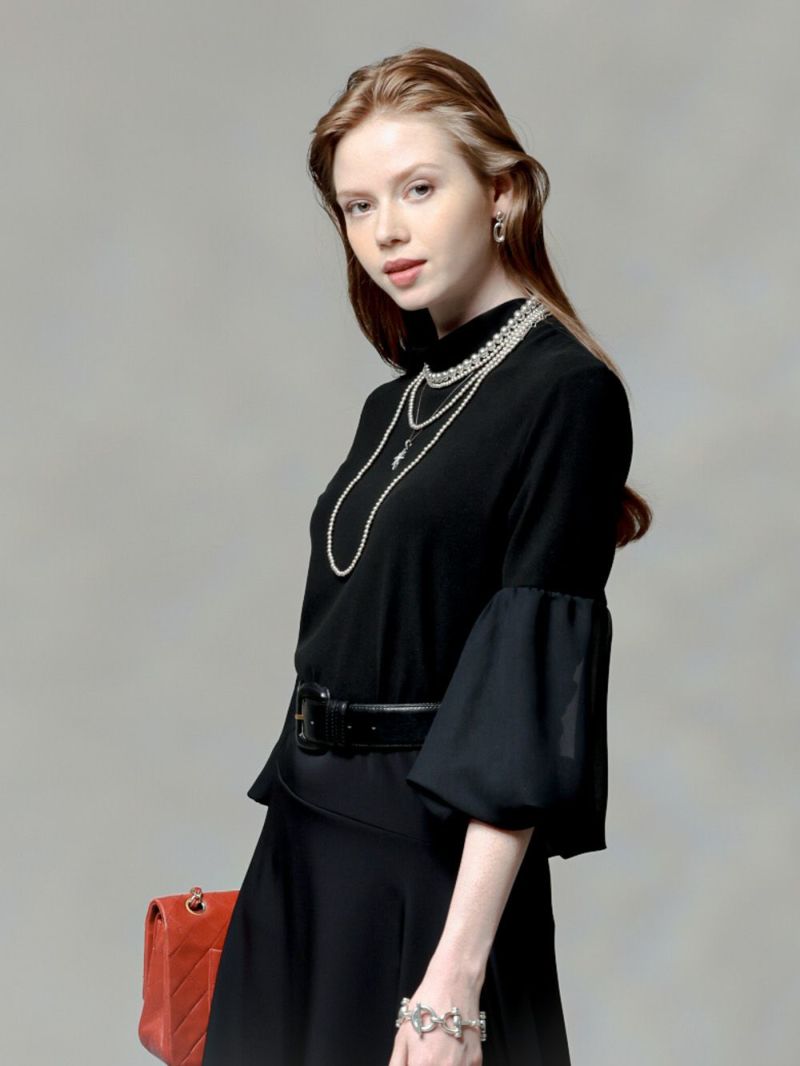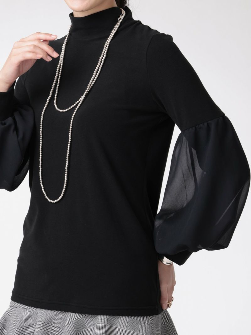 袖口にチュールを重ねたシフォンスリーブトップス。