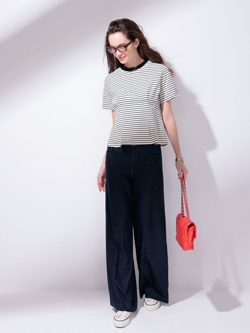 一枚で着ても、ジャケットのインナーにしても品よく決まる、頼れるトップスです。