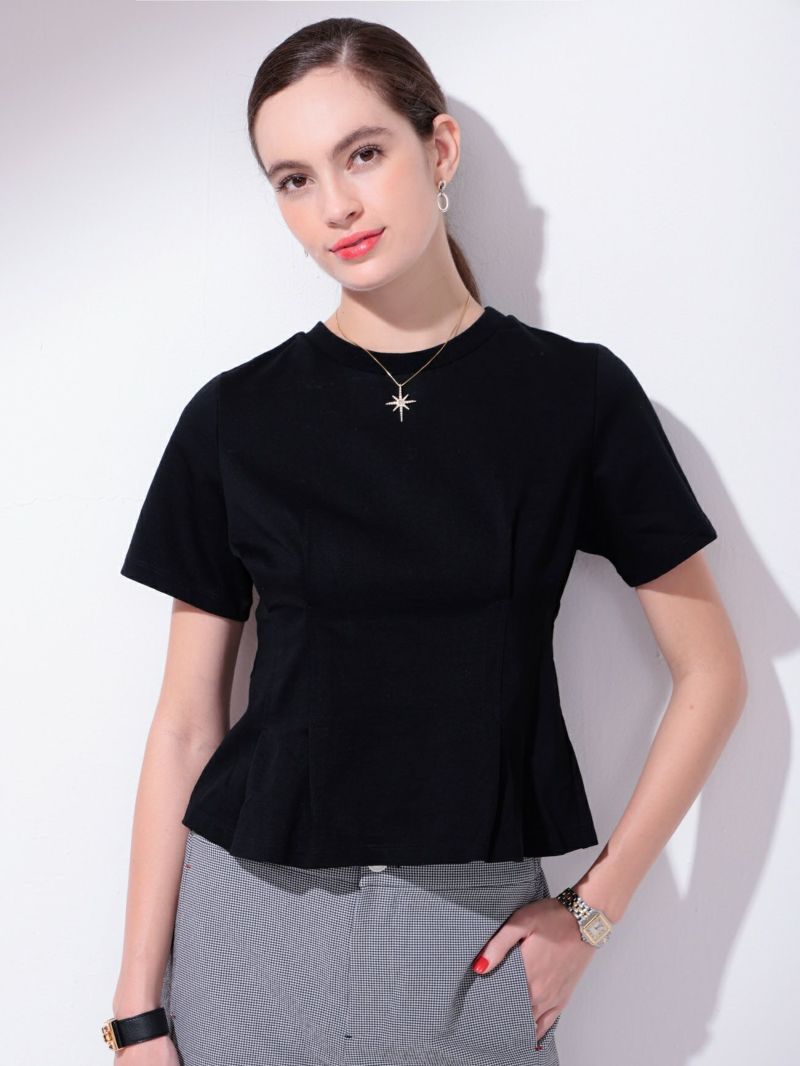 ミニマルなデザインに、ウエストのタックが描く繊細な立体感が魅力のTシャツ。