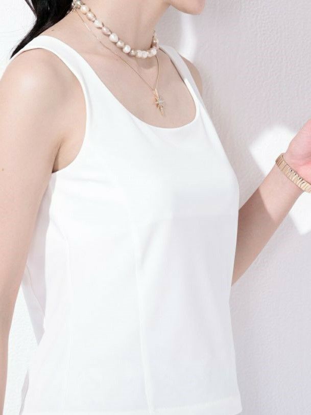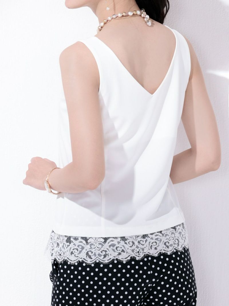 さらに、レース部分を折り込むことで、シンプルなタンクトップとしても着回し自在。