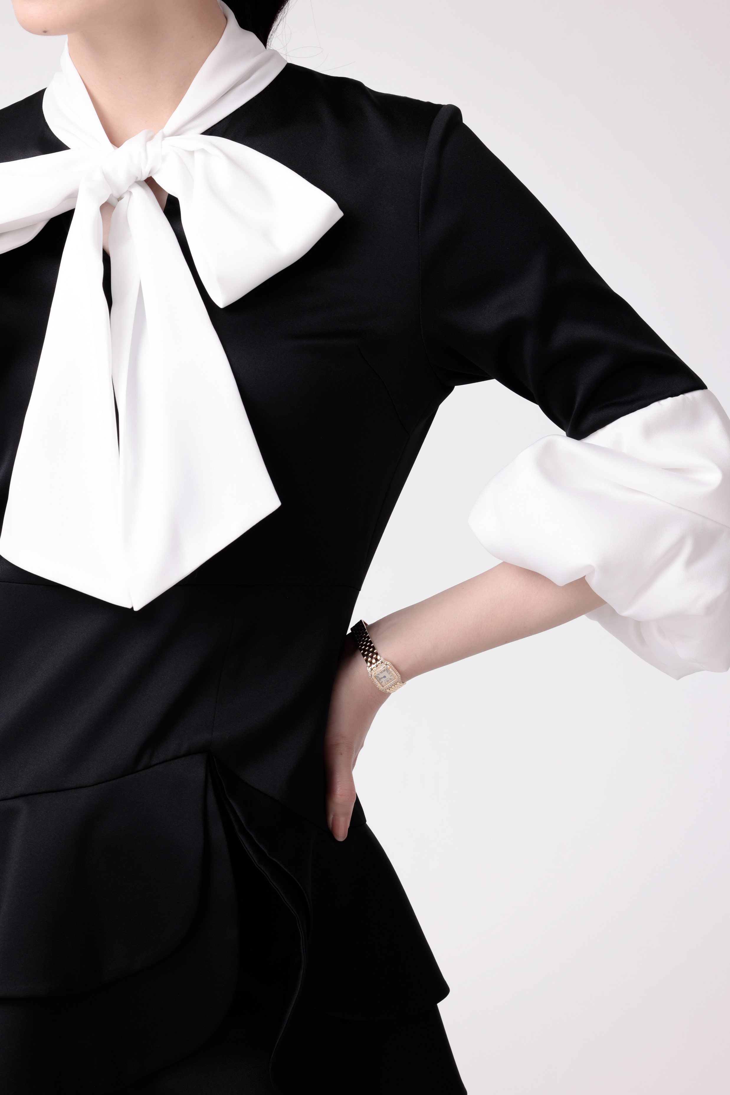 クラシカルな印象を与えるバイカラーワンピース。