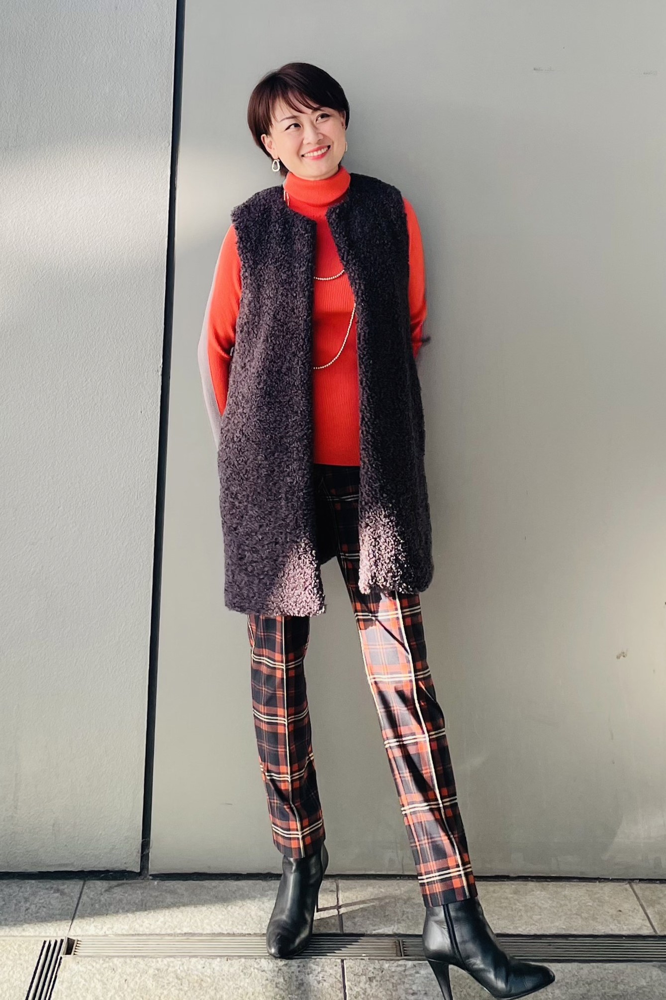 ロングブーツをプラスしてカジュアルすぎない大人の上品スタイルに。
